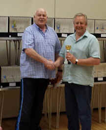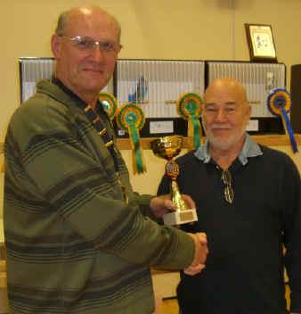 Members Show - October The Members Show was poorly supported this year with only half of the normal entry! Apologies were received from Clive Mayers and it was nice to have Brian Scott attend with our judge, Roy Powell. So thank you to all who took the time to bring birds to the show; it was good to see you all and with everybody helping it made it a very enjoyable day for all. After being booked in, the birds were placed on the staging by all of our helpers under the guidance of our show manager, Brian Duncombe, who was assisted by John Gorrell (our President). Once Roy had started judging he gave a very clear running evaluation, explaining the reasons for his choices, sometimes judging from right to left and then from left to right to make it more interesting! That aside, the best bird won on the day. We thank Roy Powell & his secretary Brian Scott who did the paper work! We had a full ploughmans lunch after the judging of the major awards was completed, which generated lots of interest. All in all we had a very good day, with everyone helping at some stage, for which I would like to thank you all again. Thanks to our Chairperson Chris Angus Smith for providing all refreshments and working in the kitchen with Jacky Fox. The major awards were made as follows: