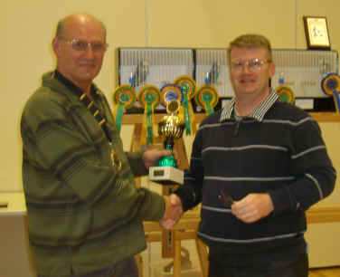 Members Show - October The Members Show was poorly supported this year with only half of the normal entry! Apologies were received from Clive Mayers and it was nice to have Brian Scott attend with our judge, Roy Powell. So thank you to all who took the time to bring birds to the show; it was good to see you all and with everybody helping it made it a very enjoyable day for all. After being booked in, the birds were placed on the staging by all of our helpers under the guidance of our show manager, Brian Duncombe, who was assisted by John Gorrell (our President). Once Roy had started judging he gave a very clear running evaluation, explaining the reasons for his choices, sometimes judging from right to left and then from left to right to make it more interesting! That aside, the best bird won on the day. We thank Roy Powell & his secretary Brian Scott who did the paper work! We had a full ploughmans lunch after the judging of the major awards was completed, which generated lots of interest. All in all we had a very good day, with everyone helping at some stage, for which I would like to thank you all again. Thanks to our Chairperson Chris Angus Smith for providing all refreshments and working in the kitchen with Jacky Fox. The major awards were made as follows:
